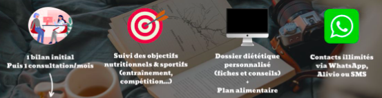 1 bilan initial + 1 consultation diététique/ mois (possible en visio)